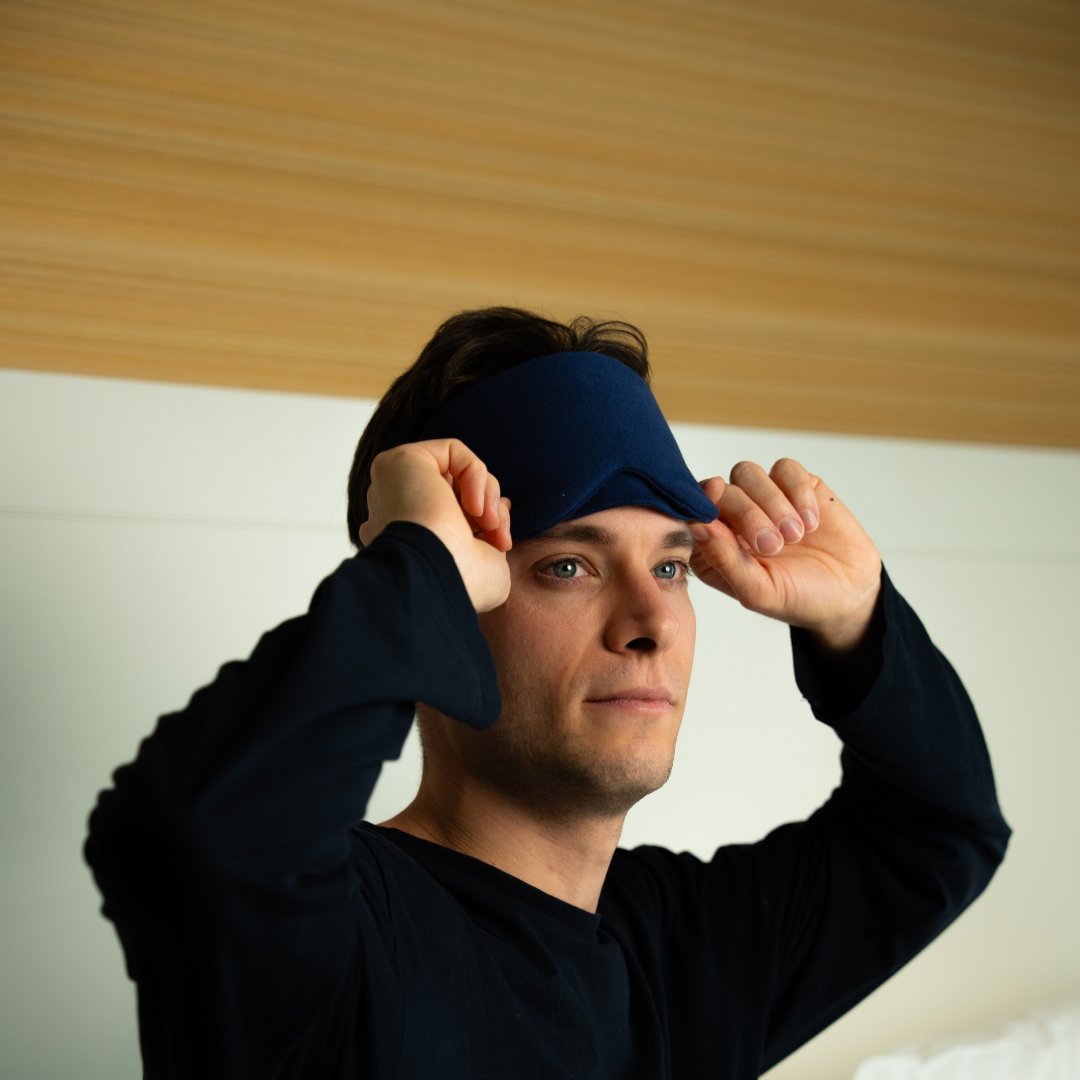 somnii’s contoured shape follows your face to block ambient light completely — without pressing on your eyes.